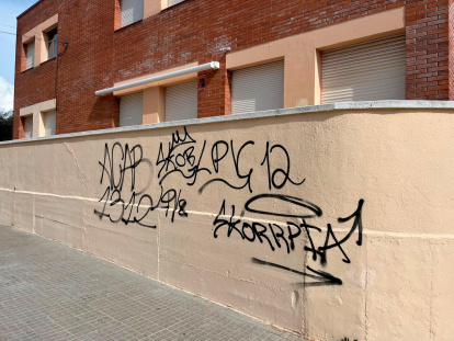 Banyeres del Penedès apareció este sábado cubierta de pintadas en fachadas de viviendas particulares.