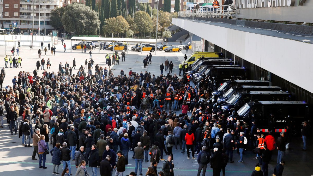 La protesta se ha trasladado ahora a las puertas de la estación, que está blindada por la Policía Nacional y los Mossos d'Esquadra y donde hay concentradas unas 300 personas.