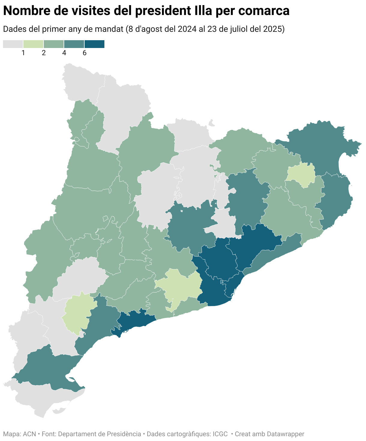 Durante este primer año de mandato, Illa ha realizado 136 actividades en el territorio catalán, que incluyen 86 visitas institucionales, 43 actos públicos y 7 encuentros con entidades locales. Además, ha mantenido reuniones con 612 entidades, ha hecho 16 viajes por el resto del Estado y 9 al extranjero.