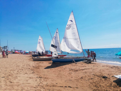 Para potenciar la práctica del patín el Ayuntamiento de El Vendrell también ha habilitado una zona de varadero en la playa para poder dejar las barcas ya que cada año hay más.