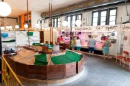 Además, la situación estratégica de las paradas gastronómicas sobre la fachada norte y oeste, cerca de las entradas, permite que este espacio pueda tener un funcionamiento autónomo fuera de los horarios del mercado.