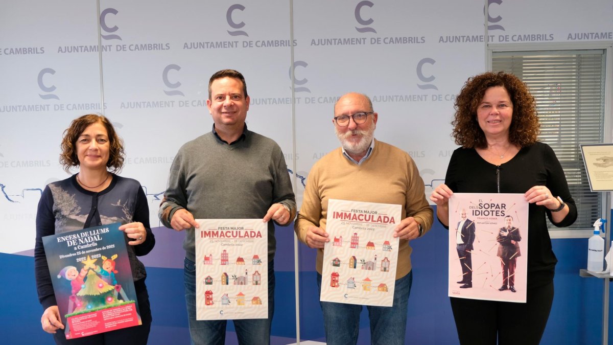 L’alcalde de Cambrils, Oliver Klein; el regidor Joan Maria Artigau, i les tècniques dels Departaments de Festes i Cultura de l’Ajuntament, Concep Ferrer i Gemma Massagué, han presentat avui dimecres un ampli programa protagonitzat per actes culturals com el lliurament dels Premis Vila de Cambrils, la inauguració de l’exposició de la Biennal d’Art Contemporani Gastronòmic i del Premi de Fotografia (27 de novembre), els Tallers Oberts (10 i 11 de desembre) o la commemoració del Setge de 1640 (10 de desembre).