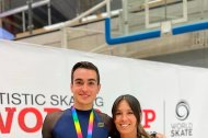 El torrense Ot Font posa con la medalla de plata junto a la patinadora Lidia Mateo, que logró el bronce.