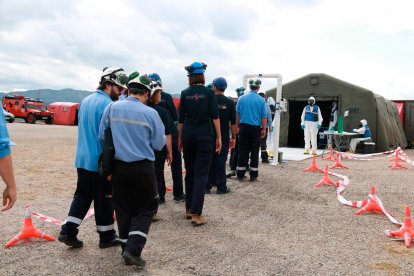 Unos 140 efectivos de la UME participan en exercicios de entrenamiento y descontaminación con trabajadores de la planta