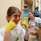 Part Alta. Vuelve la tradicional pintada de bolardos del carrer Comte, tres años después de la última edición, con un ambiente festivo y familiar
