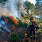 El fuego ha bajado de intensidad rápidamente y Bombers han podido controlarlo con facilidad