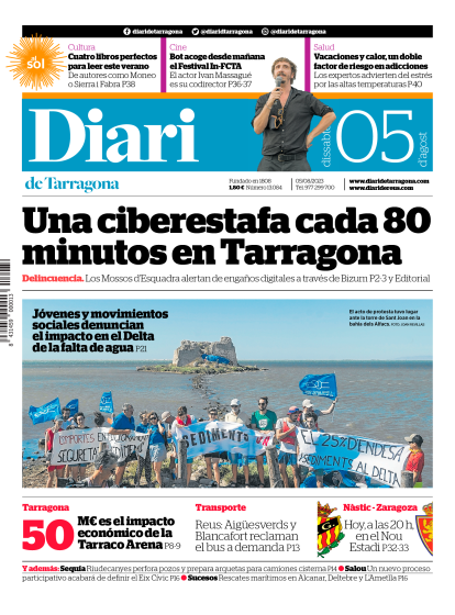 Diari Impreso Diari Impreso Portada del Diari del sábado 5 de agosto de 2023 Facebook Twitter Bluesky Send Whatsapp Whatsapp Telegram Copiar enlace Publicado por Diari de Tarragona Creado: 04.08.2023 | 23:10 Actualizado: 05.08.2023 | 23:10 Ver Documento SUSCRÍBETE Lo más leído Un camionero salva la vida a una conductora que hizo aquaplaning en Tarragona La autopista AP-7 estará cortada unos días en Martorell en sentido Tarragona Vecinos de Miami Platja: «Cuando llueve y hay temporal de mar, la urbanización parece Venecia» Viñuales acusa a Laura Roigé de desconocer la normativa y de ser "institucionalmente poco respetuosa" Accidente laboral en Tarragona: un trabajador, muy grave al caer de un tejado en El Vendrell Lo último Un herido en el incendio de su casa en El Vendrell Usuarios al límite: "Si te dicen que funcionará no te pueden dejar tirado en Tarragona" Trump: el orden y el caos El vaixell que salva vides L'art de robar art: Grans robatoris històrics