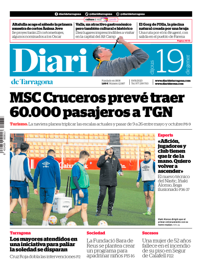 Diari Impreso Diari Impreso Portada del Diari del jueves 19 Facebook Twitter Bluesky Send Whatsapp Whatsapp Telegram Copiar enlace Publicado por Diari de Tarragona Creado: 18.01.2023 | 23:07 Actualizado: 19.01.2023 | 23:07 Ver Documento SUSCRÍBETE Lo más leído Científicos descubren en Tarragona una planta única en el mundo La mejor miel del mundo se hace en Tarragona Un hombre circula en patinete eléctrico por la autovía A-7 en Cambrils El secuestro de dos hombres en Reus y su tortura en una masía: 22 años de cárcel y expulsados de España Cortada 13 horas la AP`-7 en Tarragona a causa del incendio de un camión cargado de polipropileno Lo último Catalunya lanza una nueva plataforma digital de autoevaluación de menús escolares Así está el mercado de invierno para el Nàstic de Tarragona en su ecuador El Tour, el Any Gaudí y el cicloturismo, principales novedades turísticas que lleva Tarragona a Fitur Ya hay árbitro para la visita del Nàstic al Atlético Sanluqueño El Govern anuncia la detección de cuatro jabalíes más con peste y eleva el total de positivos a 64