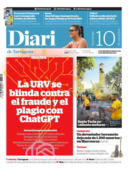 Diari Impreso Diari Impreso Portada del Diari del domingo 10 de septiembre Facebook Twitter Bluesky Send Whatsapp Whatsapp Telegram Copiar enlace Publicado por Diari de Tarragona Creado: 09.09.2023 | 22:57 Actualizado: 09.09.2023 | 23:10 SUSCRÍBETE Lo más leído Caos en la autopista AP-7: se estampa un camión contra la mediana y casi 20 coches más, implicados La explosión en la gasolinera de Tarragona se produjo por una confusión al repostar Una explosión en una gasolinera de Tarragona deja dos heridos La mascarilla volverá a ser obligatoria en centros de salud, hospitales y residencias de Catalunya Buscan a una menor de Banyeres del Penedès desaparecida Lo último Rufián reclama a Sánchez que establezca un tope de precios de los alimentos Detenido un médico que lideraba una red de tráfico de hormonas dopantes que operaba en Tarragona Junts pide que “rueden cabezas” si el brote de peste porcina salió de un centro de investigación Cientos de médicos salen a la calle en la segunda jornada de huelga para exigir mejoras laborales El PSOE denuncia ante la Fiscalía del Supremo al alcalde de Algeciras por acoso sexual