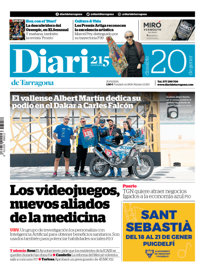Diari Impreso Diari Impreso Portada del Diari del sábado 20 Facebook Twitter Bluesky Send Whatsapp Whatsapp Telegram Copiar enlace Publicado por Diari de Tarragona Creado: 19.01.2024 | 23:12 Actualizado: 20.01.2024 | 23:12 Ver Documento SUSCRÍBETE Lo más leído Nuevo cambio en Mercadona: el supermercado quiere despedirse de dos de sus grandes secciones Detenida la mujer que llevaba dos años viviendo en la calle en Calafell: El juez dictará su destino Muere mientras hacía trabajos de mantenimiento en la cementera de Alcanar El pueblo de Tarragona de poco más de 1.000 habitantes que esconde un restaurante con estrella Michelin Intento de agresión sexual en Tarragona: un detenido por los Mossos Lo último ¿Has visto a estos hombres? Los Mossos los buscan por una agresión grave a un vigilante de Renfe Crisis de la Basura de Tarragona: de la psicosis a la esperanza de un servicio Patrimonio Mundial El Gobierno exige eliminar más de 1.800 anuncios de pisos turísticos ilegales en Tarragona Las obras de los Túnels del Garraf arrancan el 9 de marzo Los usuarios de Regionals y Rodalies salen a la calle a las puertas de tres días de huelga