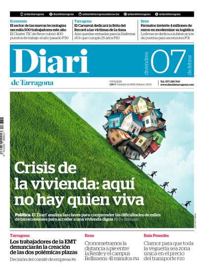 Diari Impreso Diari Impreso Portada del Diari del viernes 7 Facebook Twitter Bluesky Send Whatsapp Whatsapp Telegram Copiar enlace Publicado por Diari de Tarragona Creado: 06.02.2025 | 23:22 Actualizado: 07.02.2025 | 23:22 Ver Documento SUSCRÍBETE Lo más leído Caos en la autopista AP-7: se estampa un camión contra la mediana y casi 20 coches más, implicados La explosión en la gasolinera de Tarragona se produjo por una confusión al repostar Una explosión en una gasolinera de Tarragona deja dos heridos La mascarilla volverá a ser obligatoria en centros de salud, hospitales y residencias de Catalunya Buscan a una menor de Banyeres del Penedès desaparecida Lo último Rufián reclama a Sánchez que establezca un tope de precios de los alimentos Detenido un médico que lideraba una red de tráfico de hormonas dopantes que operaba en Tarragona Junts pide que “rueden cabezas” si el brote de peste porcina salió de un centro de investigación Cientos de médicos salen a la calle en la segunda jornada de huelga para exigir mejoras laborales El PSOE denuncia ante la Fiscalía del Supremo al alcalde de Algeciras por acoso sexual
