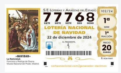 El número 77.768 ha sido agraciado con el primero de los dos cuartos premios del sorteo de la Lotería de Navidad, dotado con 200.000 euros a la serie (20.000 euros al décimo).
