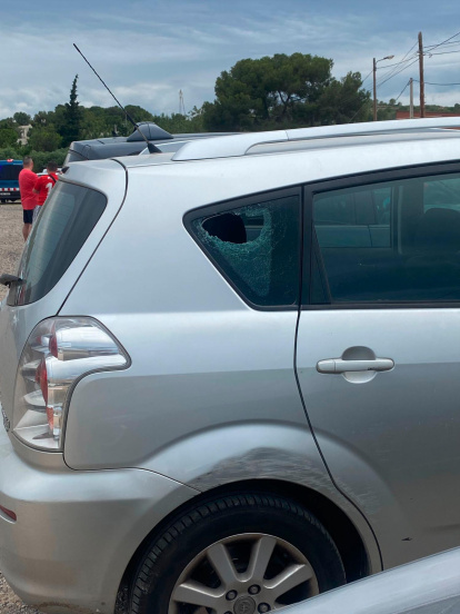Un coche que acabó apedreado tras los incidentes de antes del partido.