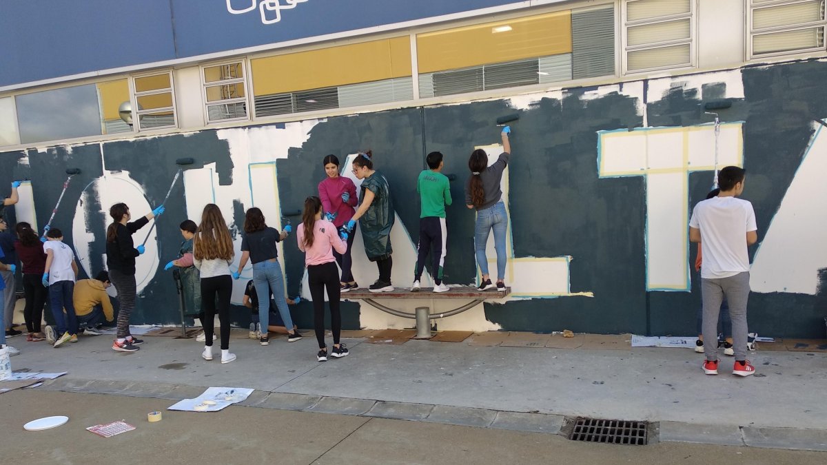 Aquests dies, elas alumnes estan a la recta final del projecte. El centenar d'alumnes de segon d'ESO de l'institut estan realitzant un mural de grans dimensions.
