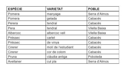 Pel que fa a la quantitat d’arbres que es repartirà als interessats es prioritzarà la pagesia i es tindran en compte les seves activitats professionals. També hi ha la intenció que les escoles de la comarca acullin algun dels exemplars, ja que es van implicar intensament i van participar de la fase inicial de recollida i identificació de les varietats autòctones de la comarca.