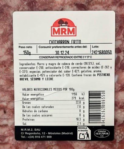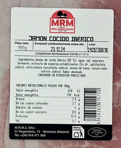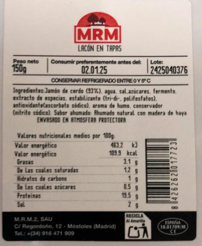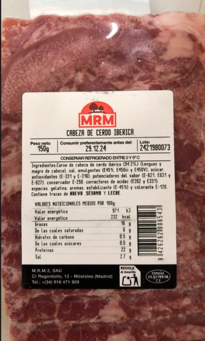 Tras las actuaciones realizadas en el marco de control oficial, se amplía la alerta a tres productos cárnicos de la marca MRM.