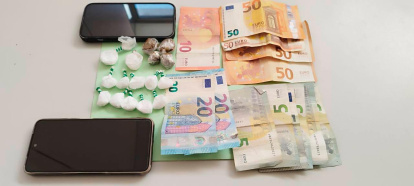 Desde el vehículo se desprendía un fuerte olor a sustancias estupefacientes y el hombre intentaba esconder dinero en el bolsillo y apagar un teléfono móvil. Los agentes encontraron 280 euros fraccionados y dos teléfonos. Además, también descubrieron dos envoltorios de papel escondidos detrás de la radio del vehículo. En el primer envoltorio encontraron 12 papelinas con cocaína, con un peso de casi 10 gramos. En el segundo había unos 15 gramos de hachís.