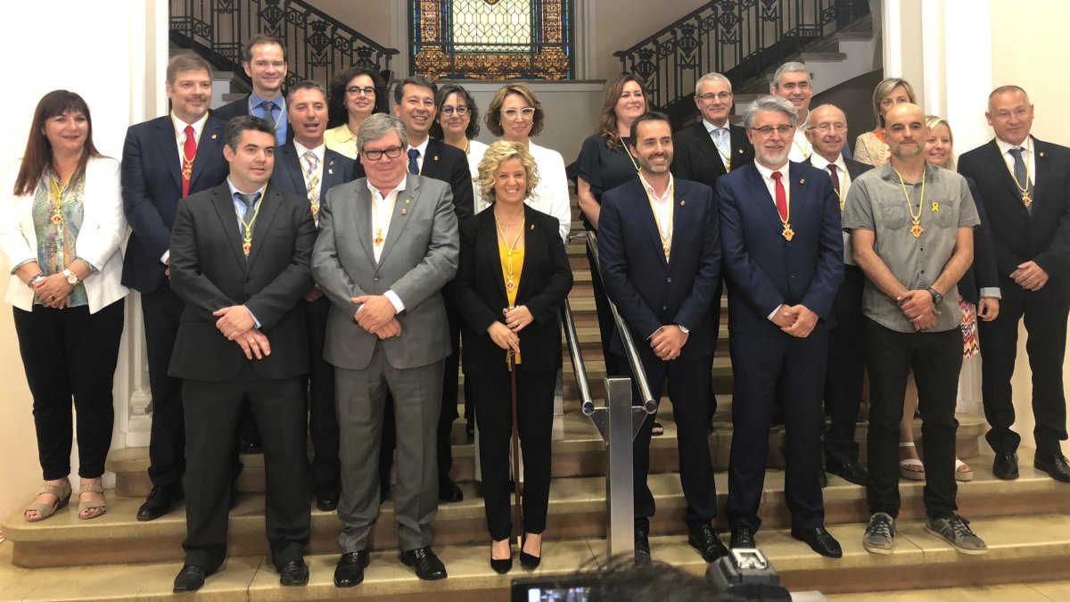 La sala de plens de l'Ajuntament de Tortosa està plena de gom a gom. Desenes de persones s'hi han acostat per seguir el ple d'investidrua de l'anterior i la que ara ja repetirà com a alcaldesa, Meritxell Roigé (PDeCAT), que formarà govern en minoria.