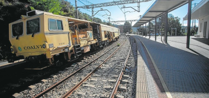 Un convoy de Adif hacía el mantenimiento de la vía. fOTO: Marc Bosch